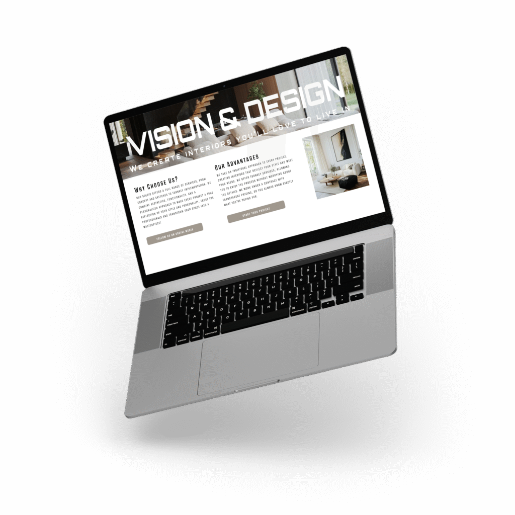Le client a sollicité la création d’une landing page pour un studio d’intérieur. La demande principale : un site inspirant, visuellement épuré, minimaliste, tout en reflétant un haut niveau de professionnalisme. Il était également essentiel de présenter l’ensemble des services et les avantages du studio — de manière concise mais convaincante.